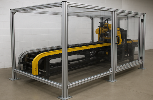 We provide turnkey tunnel-guarding systems for electric-vehicle (EV) battery production lines. Our solutions use T-slot aluminum, clear polycarbonate, and a wide range of accessories for fast, seamless installation that helps reduce risk and maintain throughput. For more details, visit our blog or our Knowledge Hub for a complete design guide made to your application.